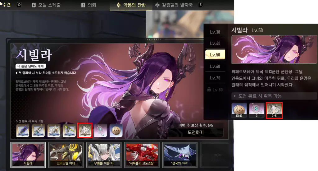 주 5회 보상을 받을 수 있는 악몽의 잔향에서