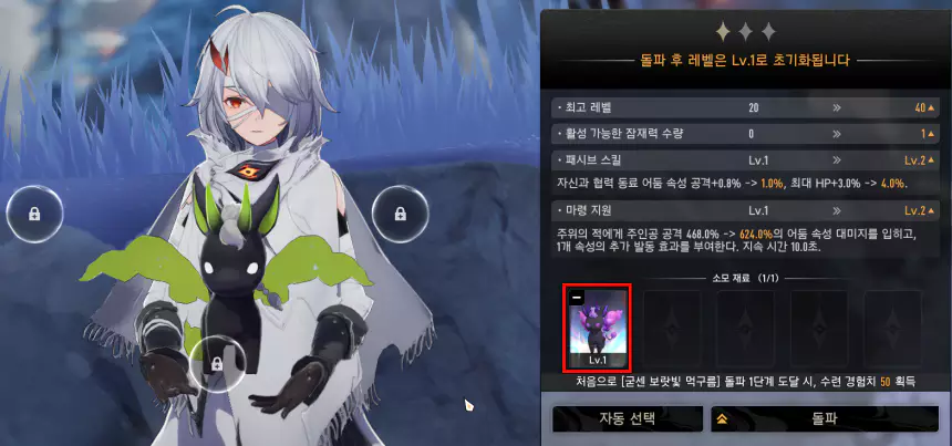 반짝이는 마령을 돌파 재료로 사용한다고 따로 슬롯이 추가되지는 않고
