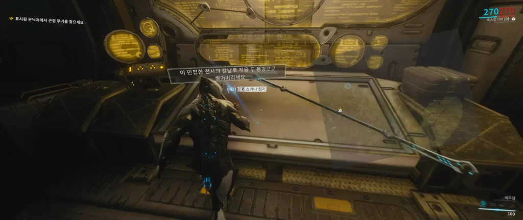 워프레임 캐릭터 선택이 끝나면 즉시 전투에 투입돼 간단한 기본 조작 튜토리얼이 시작됩니다.