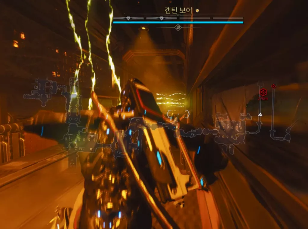 두번째 페이즈는 후퇴한 캡틴 보어를 추격하는 중 번개 장해물 피하기
