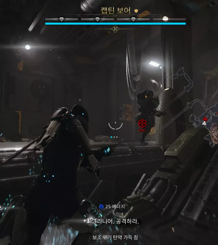 주변 적들 무시하고 곧바로 표식을 따라가 보스인 캡틴 보어를 만나 싸워줍니다.