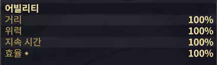 | 어빌리티 스킬 관련 효과 | 에너지 소모 없음, 시전 속도 증가 |