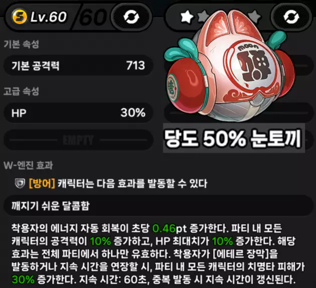 우선 자오의 S급 전용 W엔진 ‘당도 50% 눈토끼‘ 스펙을 소개합니다.