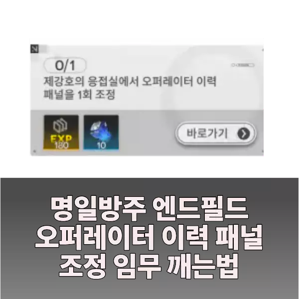 명일방주 엔드필드 4단계 노드 임무 중 하나인제강호의 응접실에서 오퍼레이터 이력 패널을 1회 조정 하는 방법을 소개입니다. 먼저 바로가기를 눌러 우주선인 제강호로 이동합니다. 제강호 응접실에 들어가 벽면에 있는 흰색 패널에 가까이 붙으면 ‘오퍼레이터 이력 패널‘과 상호작용이 가능합니다. 이 패널에 캐릭터를 등록한 후 저장 하면 임무 클리어가 가능합니다.빠른 방법으로는 메뉴에서 좌측 하단의 프로필을 누르고 ‘오퍼레이터 전시’를 눌러 … 더 읽기
